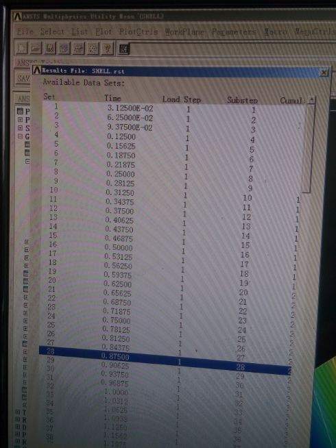 将每一个时间点作为一个载荷步,只输出每个载荷步最后一个子步的结果。在结果文件中就会看到 160 个载荷步的结果,在其他设置完成后,执行如下循环语句即可: dt=5/160 *do,i,1,160 tt=i*dt ! new time point time,tt ! current end time subst,2,10,1 ! the number of substep outres,all,last ! output the result of last substep solve *enddo 这样,在结果文件中就应该有 160 个时间点的计算结果。 没有验证过,自己试试看,完善一下。 |
