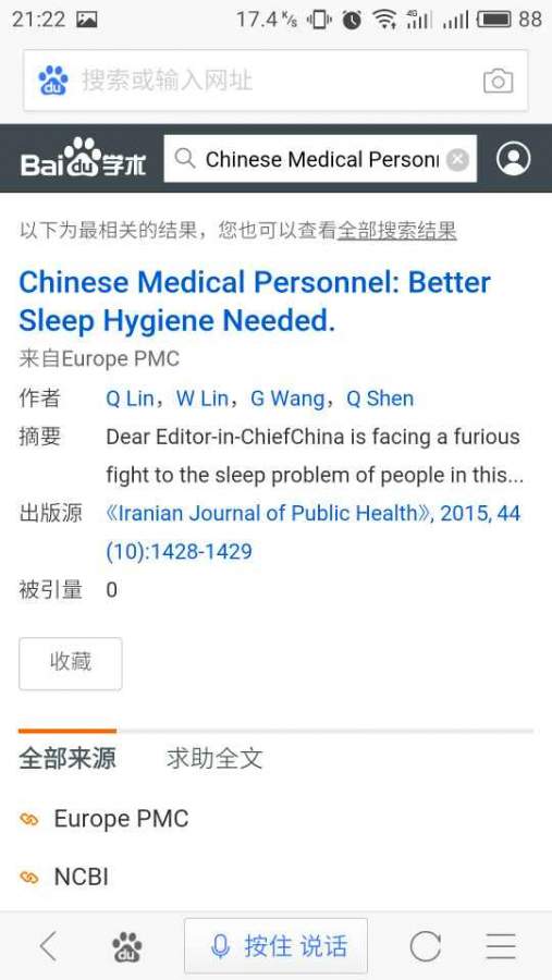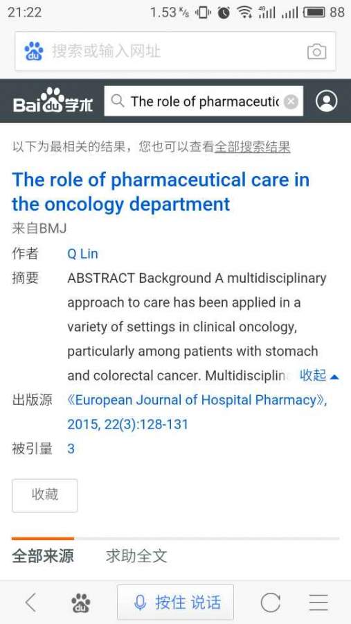 1、The role of pharmaceutical care in the oncology department 《European Journal of Hospital Pharmacy》 2、Chinese Medical Personnel: Better Sleep Hygiene Needed 《Iranian Journal of Public Health》 请大神帮我查找一下这两篇文章的期刊号,谢谢了!急用,坐等答复! |