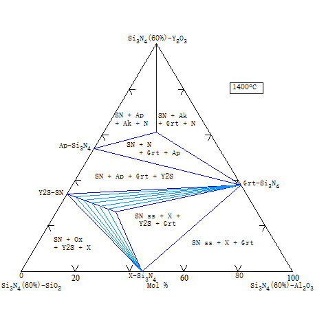 这边有一个相图,Si3N4-Al2O3-Y2O3-SiO2体系,里面的各个符号和字母代表什么含义啊,请指教!