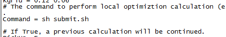Calypso中input.dat的command具体设置有什么要求,为何我始终调取不了,绝对路径,相对路径都试过了,例子里面给出的是sh submit.sh,希望使用过的帮忙解答,谢谢了, 发自小木虫IOS客户端 |