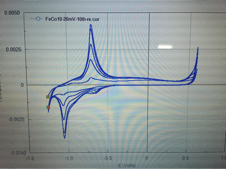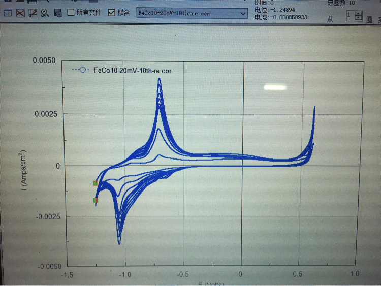 CV曲线扫的第5cycle之后peak突降又慢慢上升是怎么回事?第一幅图是前面5cycle的图,可以看出peak慢慢上升,第二幅图是总共10cycle的图,可以看出到第6cycle时peak突然降低后又慢慢上升,到到第10cycle才慢慢和第5cycle的peak持平,这是怎么回事?如何解释?以前做都是随着cycle增大peak一直增大的,成分是FeCo,请各位大神指教! 发自小木虫IOS客户端 |