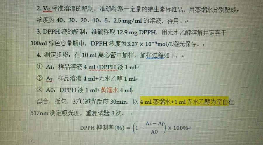DPPH实验求助
