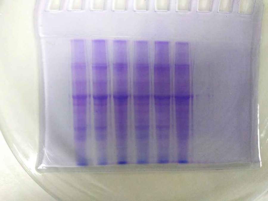 实验结果如图,条带不清晰,底色模糊,是什么原因?样品有经过离心处理,脱色也是过夜处理,希望知道的小伙伴答疑解惑,谢谢! @是水货 发自小木虫Android客户端 |