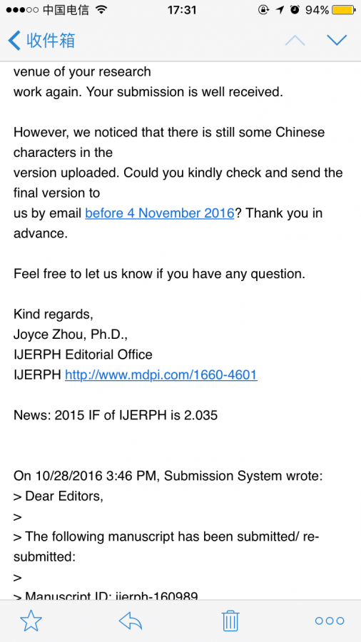 投稿,杂志回复了,让修改,说是提交版本中有汉字,求助如何修改,文章中并没有汉字啊。求助 发自小木虫IOS客户端 |