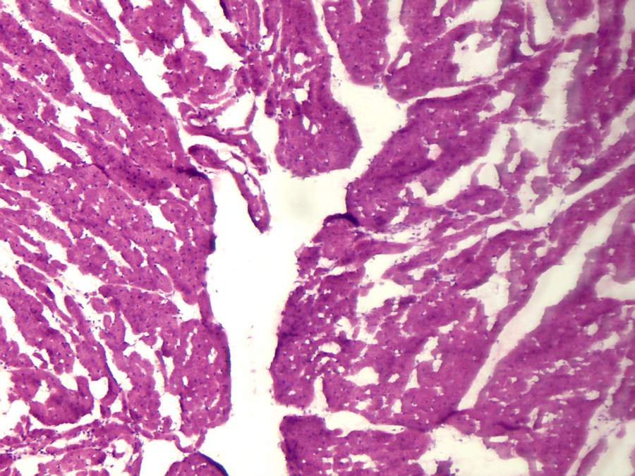 请哪位高手帮我分析一下这7张心脏组织的HE染色冰冻切片,本人完全不看不懂,