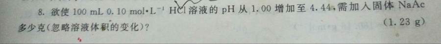 该题正确答案是加入NaAc后与生成的HAc形成缓冲溶剂,进而求NaAc的质量,能不能用另外一种方法,加入NaAc后,生成HAc,整个溶液为HCl和HAc的混合液,而HAc不能电离出那么多H+,使溶液pH上升 发自小木虫Android客户端 |