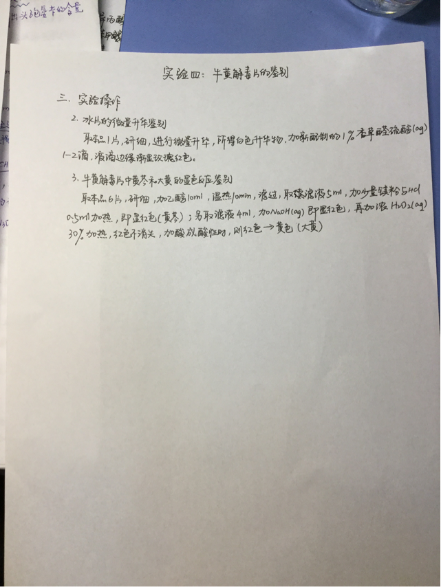 药物分析实验中,牛黄解毒片中黄芩和大黄的显色反应鉴别都涉及哪些方程式?镁粉和盐酸加的顺序对实验有何影响?求解答 @lifeliuyan 发自小木虫IOS客户端 |