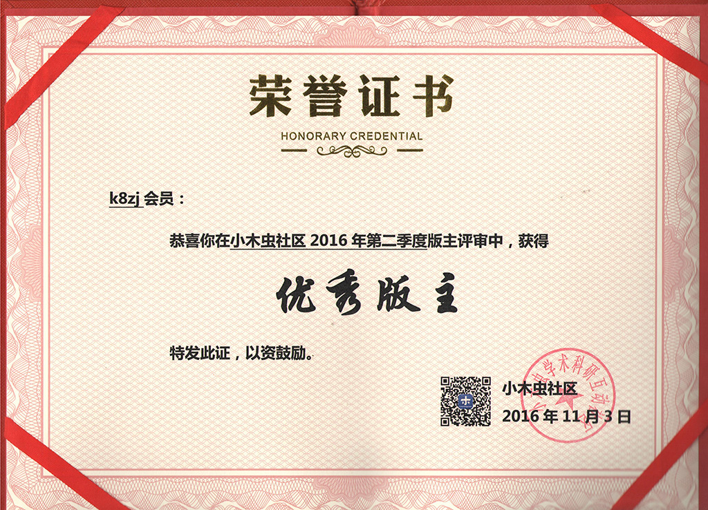 恭喜【k8zj】获得2016年第2季度优秀版主