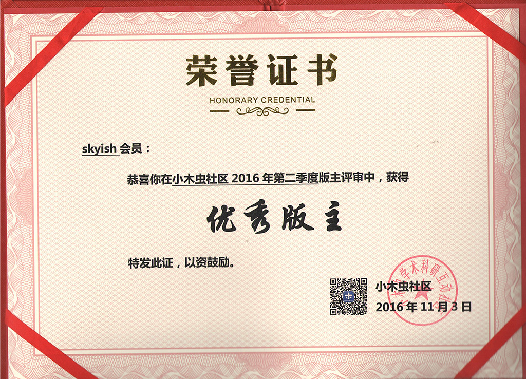 恭喜【skyish】获得2016年第2季度优秀版主