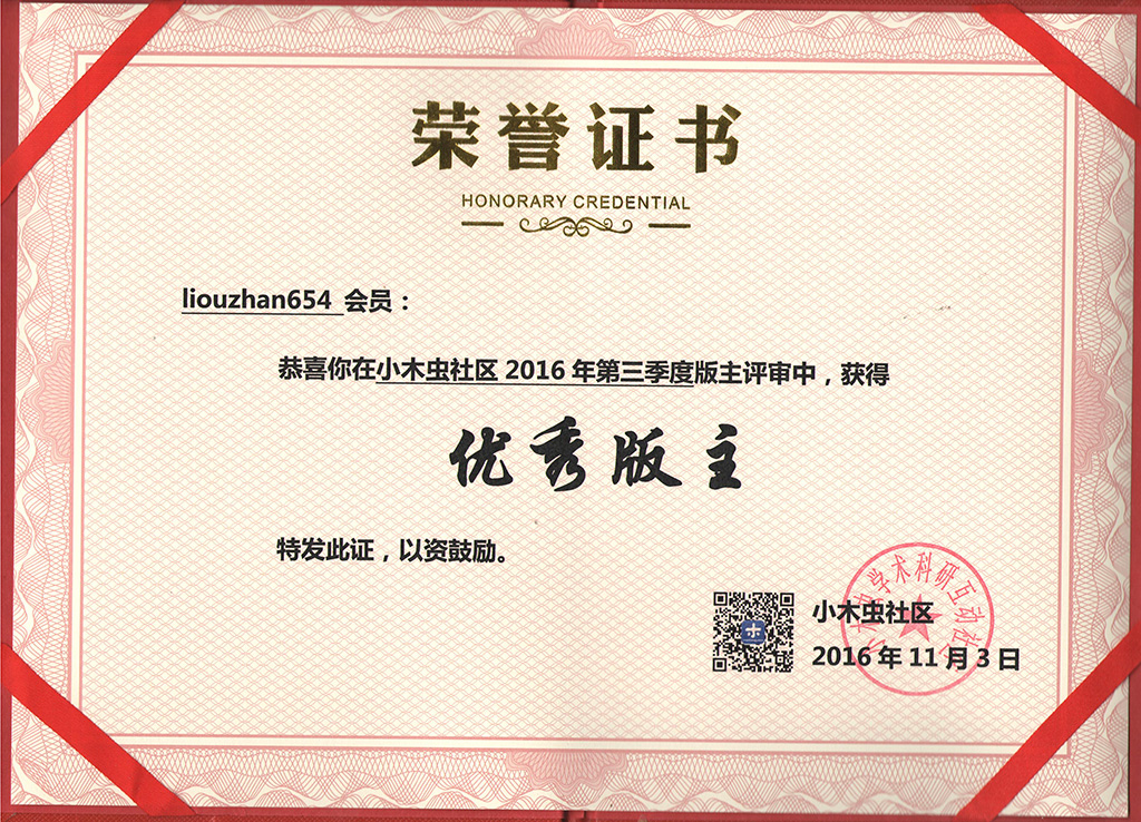 恭喜【liouzhan654】获得2016年第3季度优秀版主