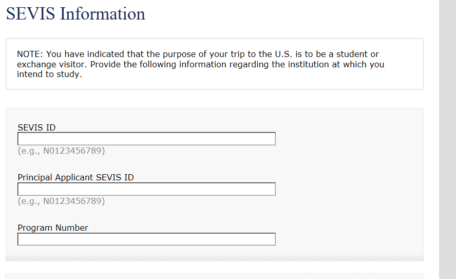 请问以上三个地方怎么填写?特别是 SEVIS ID怎么填写,没有我老公之前就是J1,已经在美国,我要填写我老公的吗?我没有,也不知道怎么找?