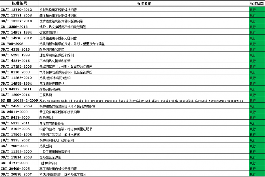 | ★压力容器以及电站锅炉用金属材料(包括焊材)标准汇总★(现行) |