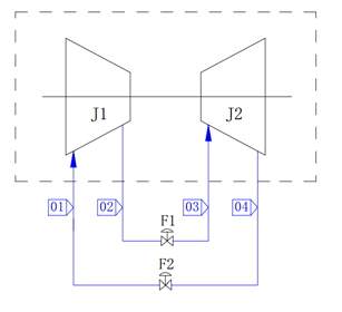 基于此理论我们可以做出如图1的压缩机J1、膨胀机J2组成并由阀门F1、F2控制的理论层面上的永动机: