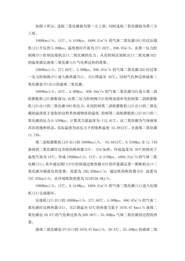 膨胀机(J2)入口的二氧化碳(03)的参数与压缩机出口的相同:1000Kmol/h、277.60℃、5.00Mpa;