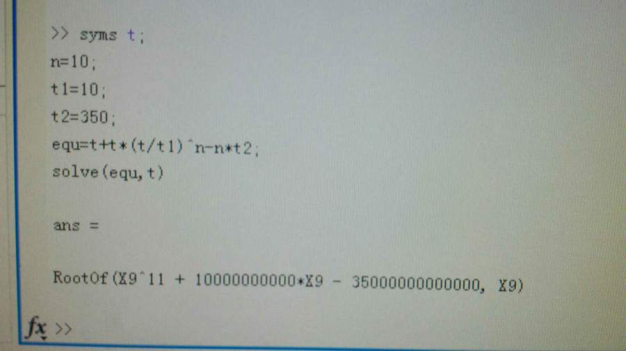 想要入门的小白一枚~~式子t+t*(t/t1)∧n=n*t2,求t的值(n=10,t1=10,t2=350)。 发自小木虫Android客户端 |