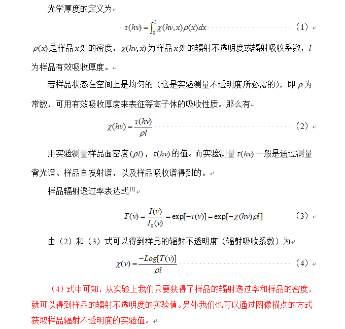 想求解等离子中 辐射不透明度 (透射率)的一些问题