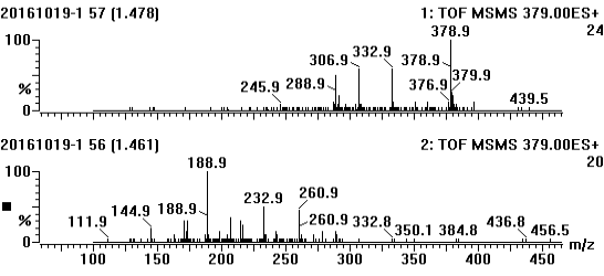 我用半制备高效液相色谱分离了酒里的物质,不知道是什么,我用LC-MS解析了,知道了质谱图,根据正负离子扫描模式,我知道了母离子为379,然后我又提母离子做了二级质谱,目前我就只知道这物质的分子量为378。根据质谱图,求求专家、大神帮我看看这究竟是什么物质啊? LC-MS正、负离子源质谱图.png 提离子379二级质谱图.png |