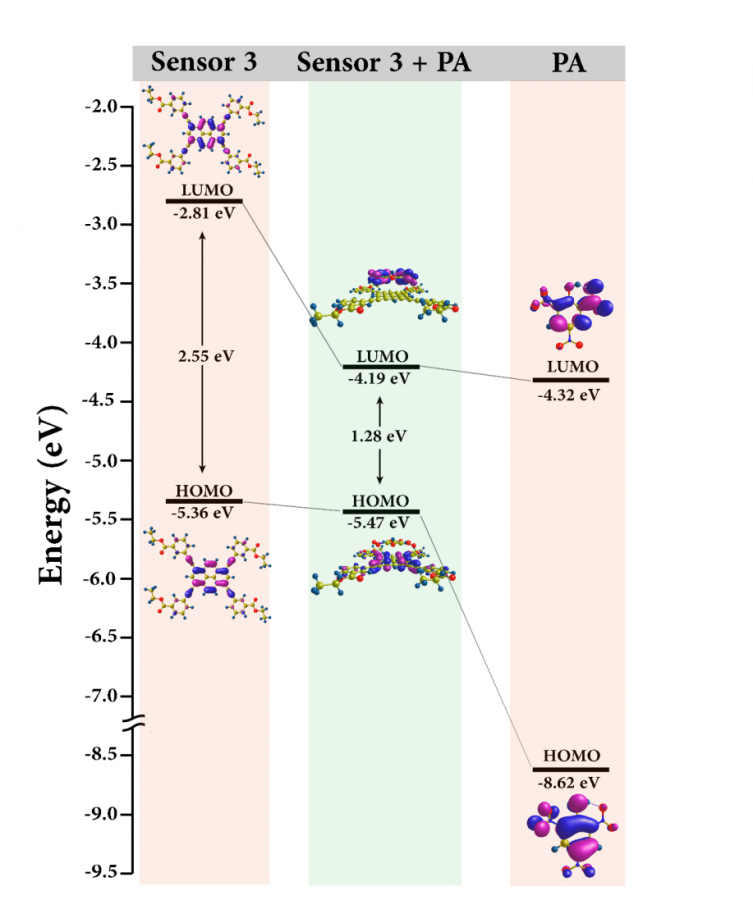 求用DFT计算受体HOMO,LOMO,和受体与苦味酸的HOMO,LOMO