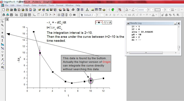 Origin如何进行曲线部分区域的积分? 如图有一系列的数据点做成的曲线,x等于10的点是自己找出来的,原始数据没有这个数据点。那么问题来了,如何在不找点的情况下求2到10之间的积分呢? 发自小木虫IOS客户端 |