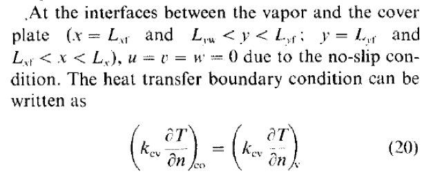 这个边界条件摘自文献 是有关于汽液交界面的 我在传热书中找到类似的边界条件类型 它称为界面连续条件 (是在三类常用边界条件下面) 我想问这个边界条件在fluent里怎么体现 ?是interface吗? 发自小木虫IOS客户端 |