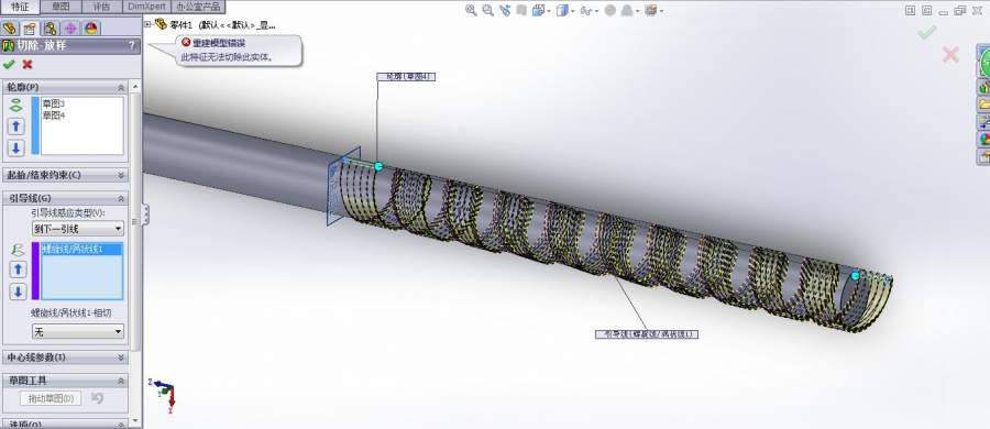 solidworks放样命令画变槽深的挤出机螺杆,提示我“此特征无法切除此实体”已有7人参与