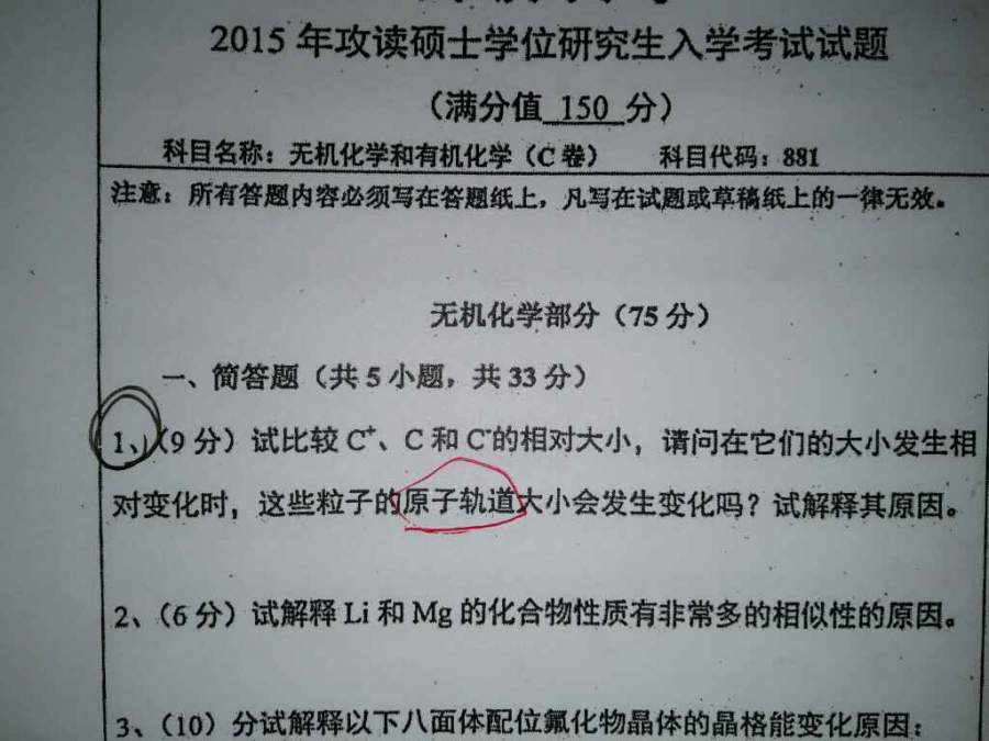 关于原子轨道大小的问题。。。考研的题目,大神们可以给些看法么? 已有1人参与