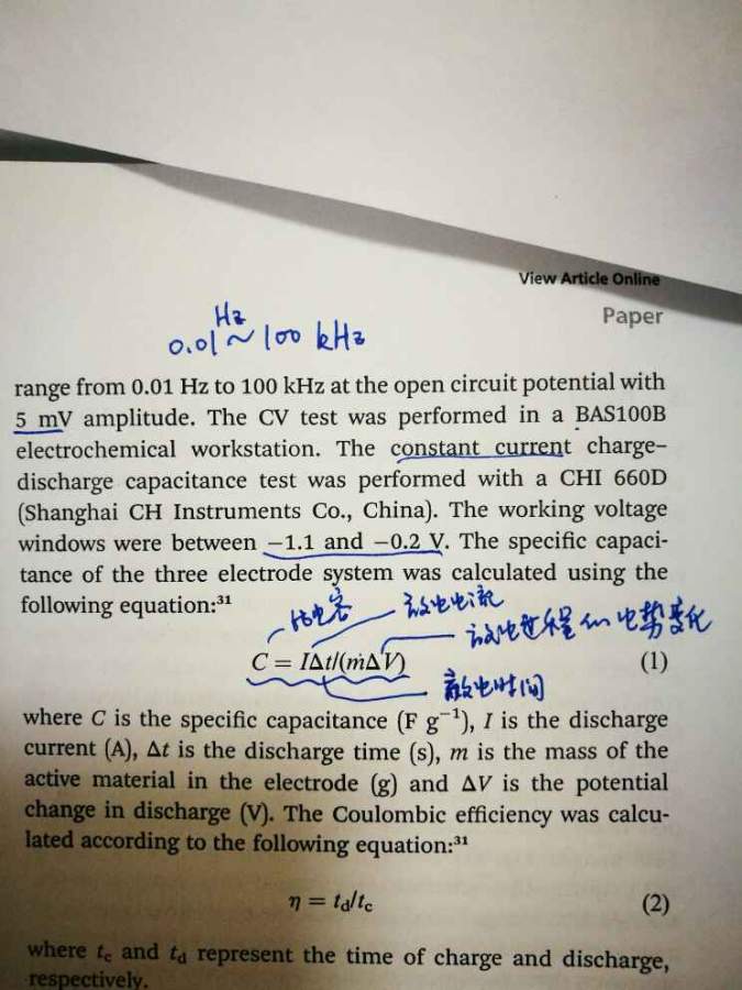 充放电过程,电位是-0.5~0.5V,电流是1A/g,放点时间400s,活性物质2mg,想要知道比电容,求具体过程(新手不太懂) 谢谢!