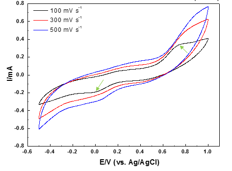 电化学新手,请教一下图中的循环伏安是有氧化、还原峰各一个(箭头所示),还是各两个呢?请教一下0.23和0.40左右的是不是峰?