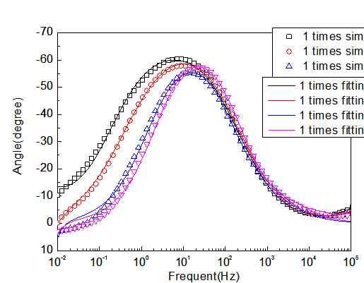 谢谢送花先。 不是用 log |Z|, 而是只取虚部 -Im(Z)和频率画在一起。 之所以有时间常数,是电极表面的阻抗是由双层电容Cdl和电荷传输电阻Rct并联组成。 如果把这个并联结构写成一个阻抗公式,就是 Z = 1/ (1/Rct + i*ω*Cdl) = Rct / (1+i*ω*Rct*Cdl) = Rct / [1+(ωRctCdl)^2] - i*Rct*(ωRctCdl) / [1+(ωRctCdl)^2] 由于时间常数的位置在Nyquist顶点,就是 -Im (Z) 到达最大值。由上面公式可知 -Im (Z) = Rct*(ωRctCdl) / [1+(ωRctCdl)^2] 这个公式的最大值出现在 ω*Rct*Cdl = 1,即 1/ω = Rct*Cdl处。由于1/ω的单位是时间,因此 Rct*Cdl 就代表了这个特征时间常数的值。 如果做过了拟合,用Rct*Cdl就是时间常数。 如果没做拟合,画出 log(-Im(Z)) vs log (Freq),找出顶点对应的频率F,用 1/ (2*π*F) 就可以算出。 同理,如果时间常数在变化,那么就说明Rct和Cdl之中有一个是在改变。如果你做了拟合,就很容易看出是哪个在变化。 |