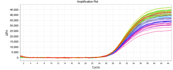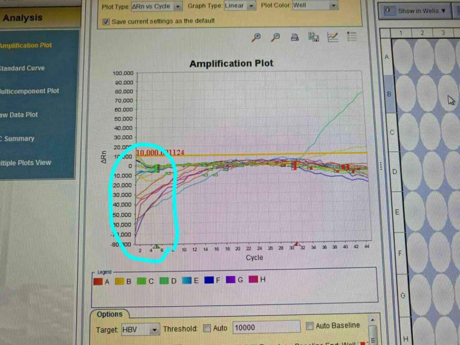 麻烦大家帮我分析一下,图中扩增曲线前端怎么在基线下方这么多 发自小木虫Android客户端 |