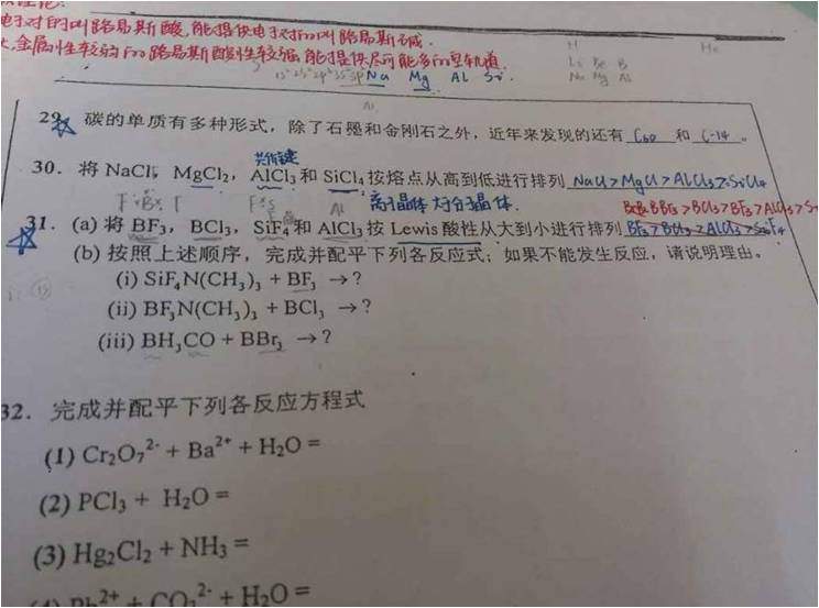 判断Lewis酸性大小有点忘了,综合考虑原子半径和电负性得到的一个结论,第二个很容易,如果第二项物质的酸性比前一个化合物里的酸性强就会反应,有点类似强酸制弱酸 发自小木虫Android客户端 |