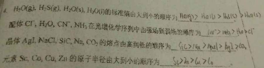 H2S(g)>H2O(g)>H2O(l)>H2O(s) 第二个对 第三个SiC NaCl AgI Na CO2 第四个对 发自小木虫Android客户端 |