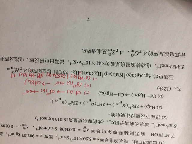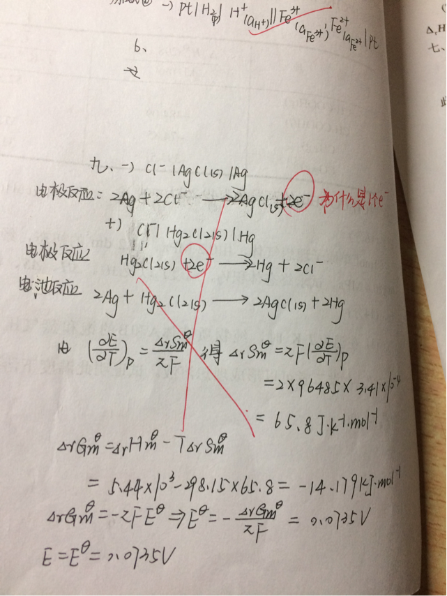 | 你理解了 ΔrGm、ΔrHm,ΔrSm,ΔrUm 中m的意义(反应进度为1mol),就应该知道9题的不严密之处,题中给出的ΔrHm的数值是没有意义的,因为其数值不像标准摩尔燃烧热、标准摩尔生成热、中和热等数据与反应方程已建立了一一的对应关系,因此在给出该数据时,无需写出其对应的化学反应。对于一般的化学反应,其ΔrGm、ΔrHm,ΔrSm,ΔrUm数据的给出一定要与给定的方程相对应,这就是通常计算此类题时,先写反应方程式的原因。9题中给出的数据应该指明反应进度1mol的意义是反应中转移1mole的情况。8题不存在这种情况,反应方程式的书写既可以是转移1mole-,也可以是转移2mole- |