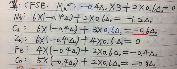 其实我的意思是,在比较除铜以外的金属离子顺序时,用晶体场稳定化能比较,然后算出来CFSE都与分裂能有关,但是每个金属离子的分裂能不一样,如何比较呢?望老师继续指教 @jiagle发自小木虫IOS客户端 |