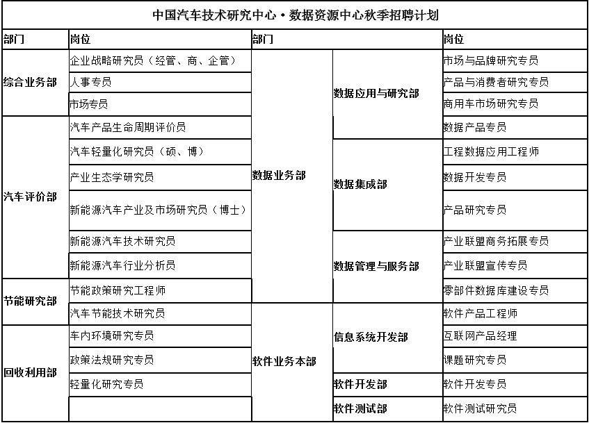 央企中国汽车技术研究中心•数据资源中心 招聘计划(含实习生)