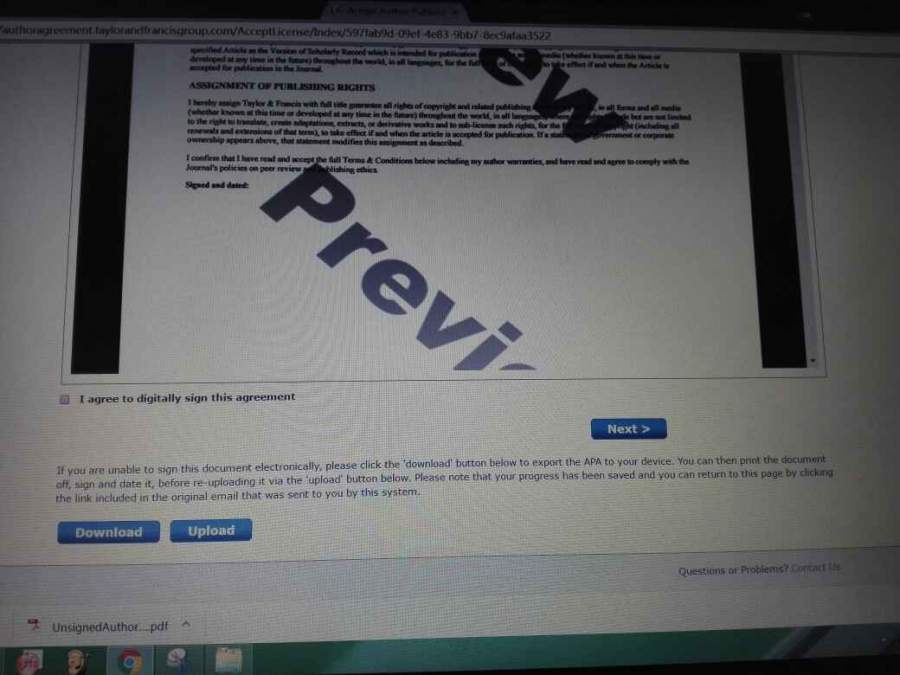 本人投稿于journal of dispersion science and technology,收到出版协议,我看要求上面写有电子签名,也可以打印签字上传,由于第一次投稿,没有经验,不知道具体该如何操作,选哪个比较好?以前更多的是打印签字的,没有听过电子签名的。请大神根据我传的图片给我解答一下,多谢 @Monash2011 发自小木虫Android客户端 |