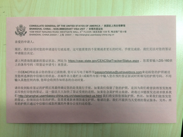 今天是2016.11.16,在上海约的8:00的面签(J1,去加州大学伯克利分校短期访学6个月),VO非常麻利地问了我几个问题,问我去学什么,我说Groundwater Hydrology,VO又问了一次,我猜他没听懂这是个什么领域…于是VO要走了我的邀请信,我的CV,外导的CV,研究计划,护照,在我的DS-2019上签了字盖了章,收走了我的护照,给我了一张被check的通知单,我就懵逼了…… 我猜是VO不知道我这个专业是干什么的,所以要回去check一下,我的研究计划写得太专业,不是这个专业的可能看不懂,现在好焦虑,怕他们拿回去check也看不懂…… 好可怕,我计划是1月3号在伯克利开学,可是现在不知道要等多久了。大家有类似经验吗?求分享,求指导…… 发自小木虫IOS客户端 |
