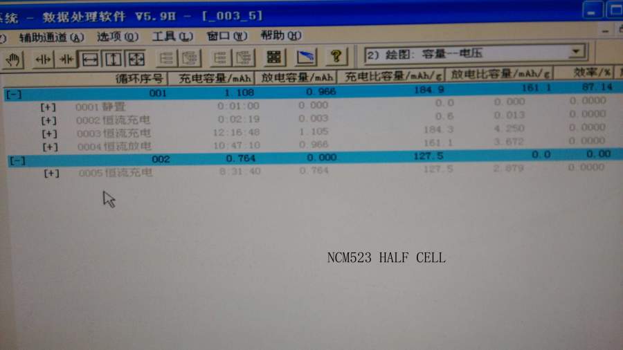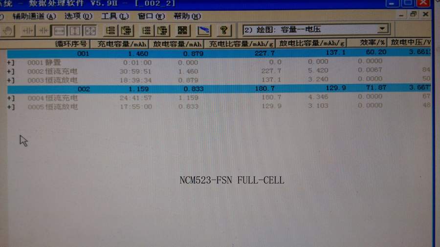 正极镍钴锰523 84:8:8 负极FSN石墨 90:3:7 电解液1M LIPF6 EC DEC 1:1 隔膜 PE 三元半电池感觉并没有问题。首次效率85%-90%之间。 为什么全电池首次效率如此之低。充200多,放不到150。 希望能受到各位前辈的指导。 NCM-FSN.jpg NCM-FSN-1.jpg NCM.jpg NCM-1.jpg |