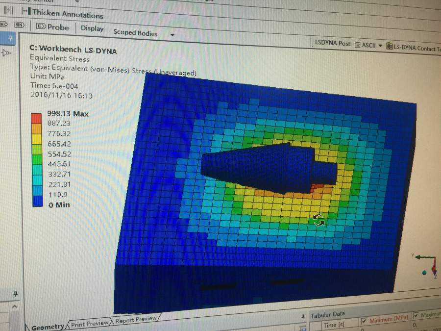 基于workbench中LS-DYNA插件的两次相同条件的跌落仿真,不同的是其中某零件的稍许不同,其他全部相同。 然而结果应力分析中一个只有靶板上有应力,目标物表面无应力;另一个则正常,靶板和目标物全部有应力。 求解原因。 IMG_3846.JPG IMG_3847.JPG |