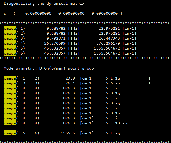 请教各位大神,小弟入手pwscf不久,计算石墨烯的声子谱,可发现两个问题:1、G点附近总有虚频,该怎么消除?2、在.ph.out输出文件里出现很多问号? (如下图),我猜测这破坏了对称性,导致了其声子谱不简并! 5668A9D2F35AADAE982E6E6AEB2DA8BC.png |