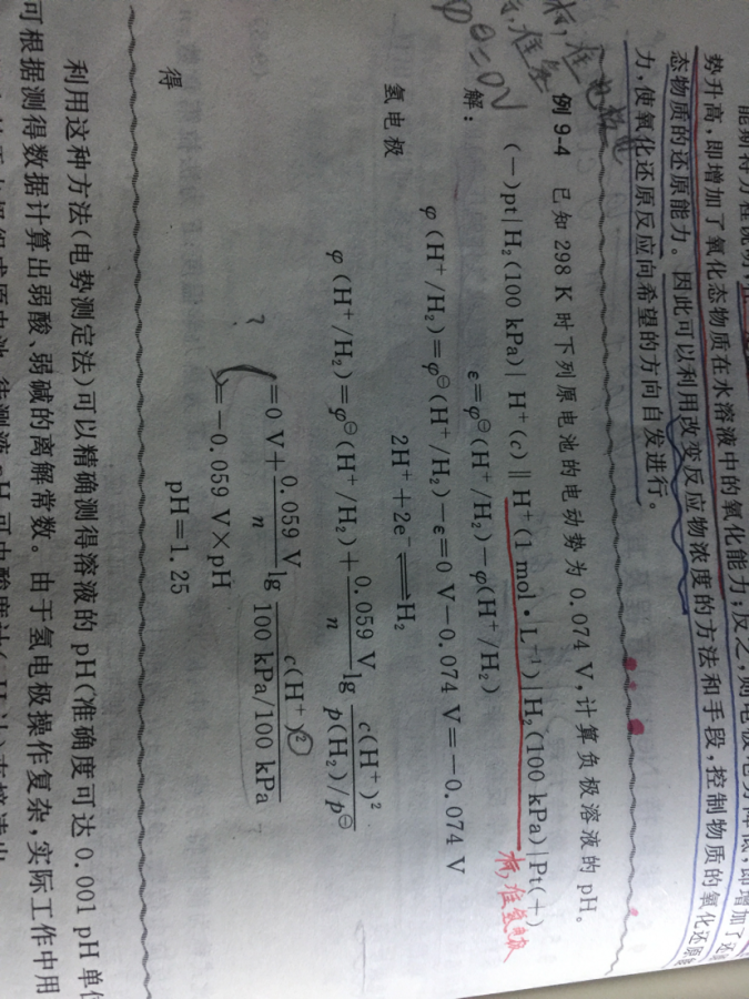 倒数三行计算的时候不是氢离子浓度的平方吗?n等于1,为什么最后却是-0.059×pH呢?难道不是乘以pH 的平方吗?因为是课本上的解答所以我已经想了有一会儿了~ 发自小木虫IOS客户端 |