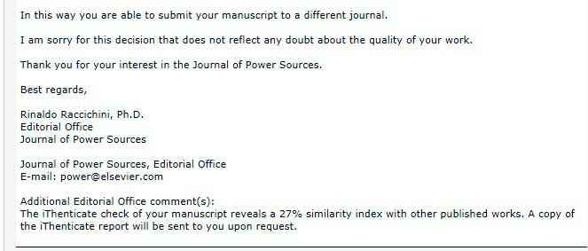 投稿JPS,然后论文查重,重复率是27%,编辑就给拒了,这个是拒稿信的一部分,麻烦看一下重投有米有希望额,我看编辑并没有质疑文章质量问题只是说重复率,然而他说了可以投其他杂志,所以求一个建议要不要重投。谢谢谢谢 发自小木虫Android客户端 |