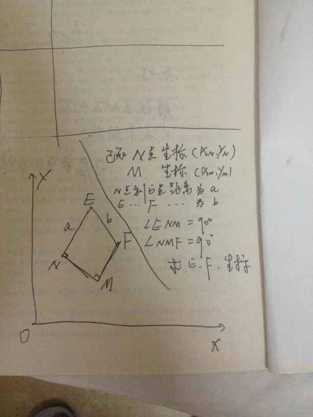 已知n点坐标(Xn,Yn),m点坐标(Xm,Ym),n点到E点距离为a,E点到F点距离为b,求E, F坐标。两个角90度,在N,M处。 @laosam280 发自小木虫Android客户端 |