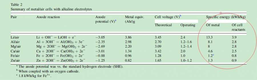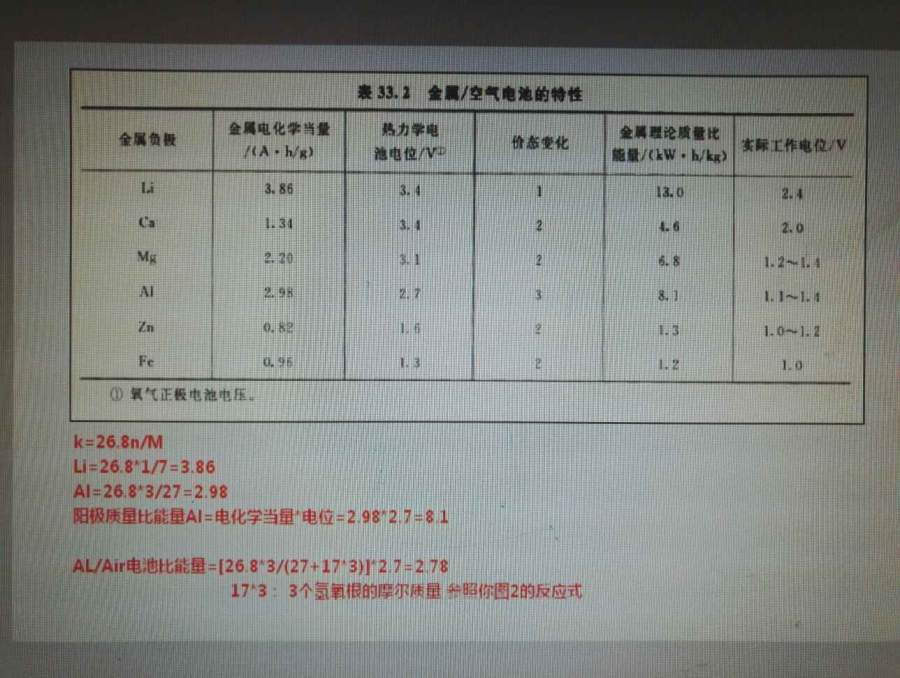 1、以铝空气电池为例吧,有个是铝空气电池的理论能量密度是8100Wh/kg(第三张图),有的是8135(第四张图);而有的是阳极材料的理论能量密度是8100,铝空气电池的理论能量密度是2800(我看第二章图应该是翻译的第一张图的内容) 我现在是搞晕了,想找到数据的原始来源而不得,或者找到该数据的理论计算方法,求解。 1.jpg 2.jpg 3.jpg 4.jpg |