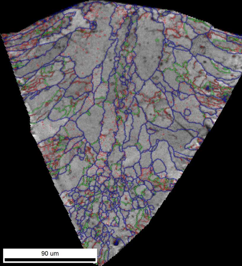 关于铝合金焊缝的EBSD分析图的分析