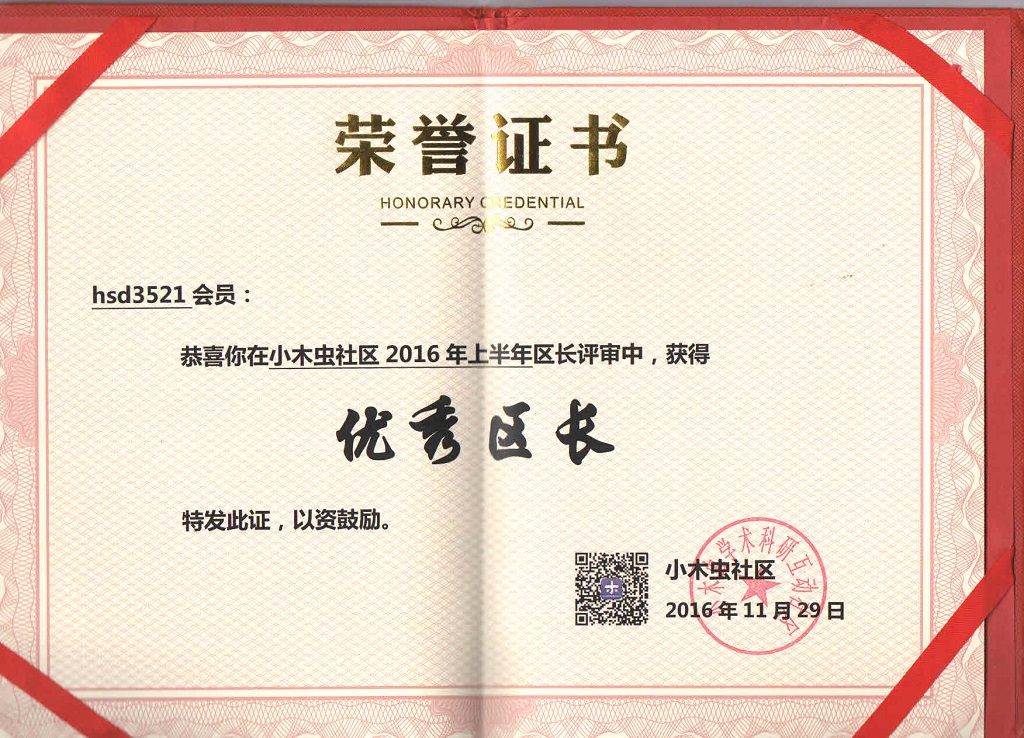 恭喜【hsd3521】获得2016年第4季度优秀区长