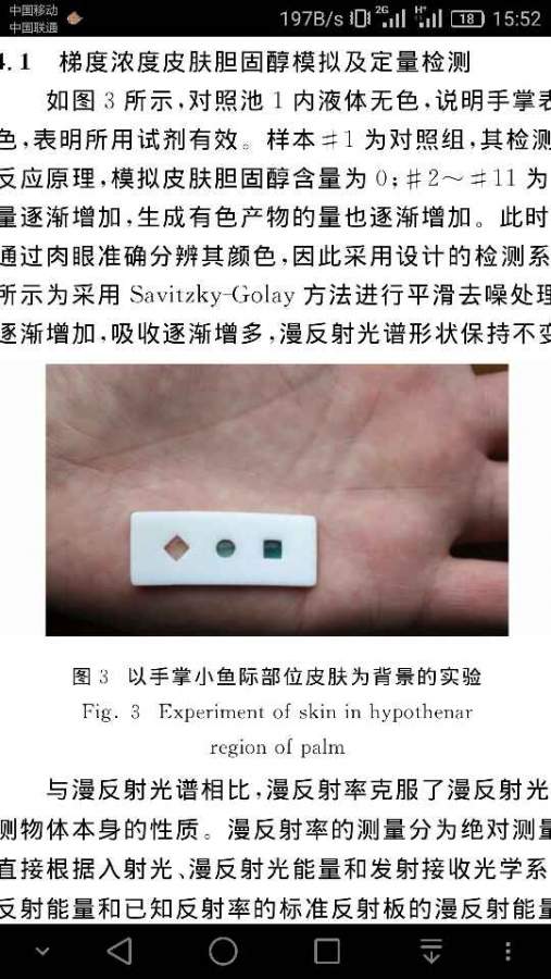 在看一篇论文,主要是用光学法检测皮肤胆固醇的量,请问有没有人知道为什么以手掌小鱼际皮肤为反应背景? 发自小木虫Android客户端 |