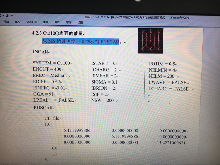 我建立完模型一共只有8个...教程上有16个。不知道问题出在哪里。后面k点也采用了5*5*2,求大牛求解 发自小木虫IOS客户端 |
