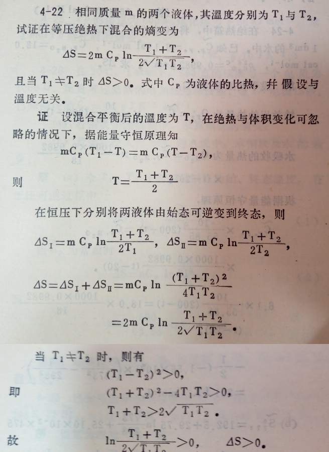 证明:两块质量完全相同的同一种金属,在绝热容器内进行热接触并达到平衡,若它们起始温度不同,则此过程的熵变必大于零 这个题如何证明呢?没思路 发自小木虫Android客户端 |
