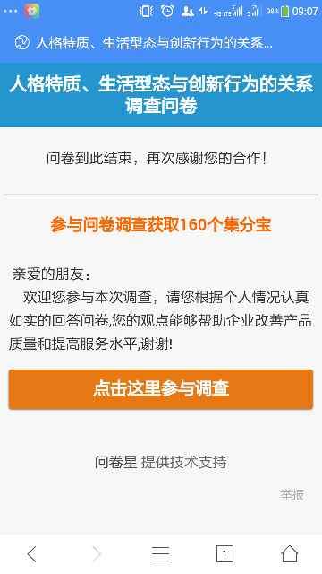 项目研究问卷填写求助!本项目研究的是科研人员的人格特质、生活形态和创新行为的关系。 目标对象为高校科研教师、硕博研究生、科研院所研究人员及企业研发人员等,还请惠予填写! 问卷链接:https://sojump.com/jq/10458838.aspx 评论区回复问卷提交成功的截图即可赠送10个论坛币! 问卷不包括个人姓名等隐私信息,仅作研究使用,不用做任何商业用途,也请您认真填写,您的答案对我很重要! 请求大家帮助,万分感谢! 也欢迎有问卷填写需求的坛友互助填写,我也必将大力支持!再次万分感谢! |